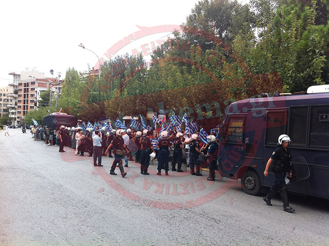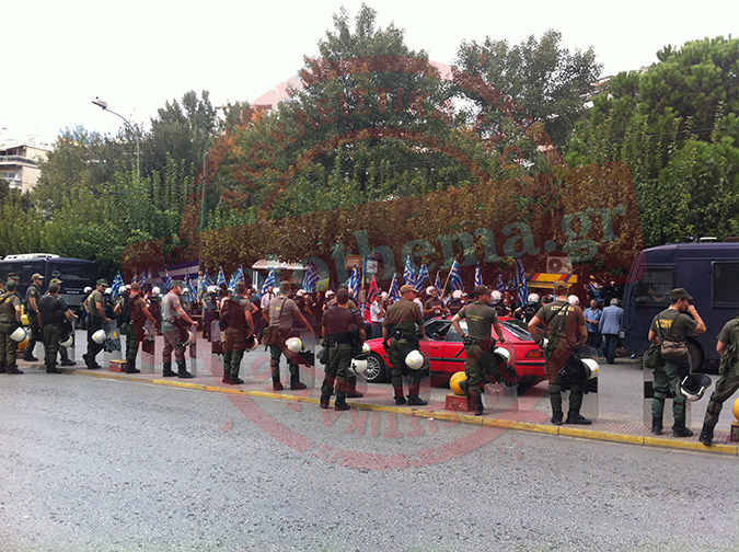 Αυτή την ώρα και ενώ αναμένεται η προσέλευση ενώπιον του ανακριτή του Νίκου Μιχαλολιάκο, υποστηρικτές και μέλη της Χρυσής Αυγής, εκατό με διακόσια άτομα περίπου, πραγματοποιούν συγκέντρωση έξω από τα δικαστήρια της πρώην σχολής Ευελπίδων και συγκεκριμένα έξω από το κτίριο 6.