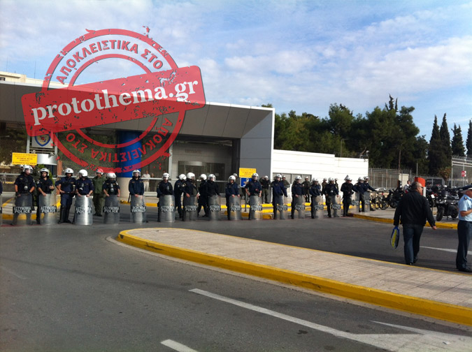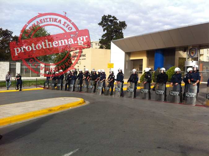 Έξω από το υπουργείο και για λόγους ασφαλείας υπήρξαν αστυνομικές δυνάμεις των ΜΑΤ.