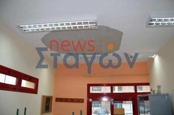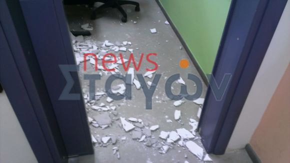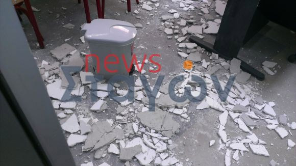 Οι μαθητές και οι δάσκαλοι που βρίσκονταν στο σχολείο για το ολοήμερο άκουσαν λίγο πριν τις 4 έναν τρομακτικό θόρυβο. Η εικόνα που αντίκρισαν ανοίγοντας την πόρτα της αίθουσας ήταν... βομβαρδισμένου τοπίου! Σύννεφο σκόνης και κομμάτια σοβά στο πάτωμα, ενώ από το ταβάνι έλειπε ένα κομμάτι περίπου δύο τετραγωνικών μέτρων!