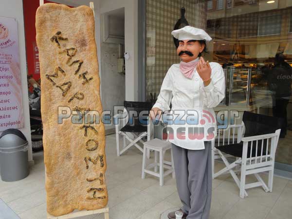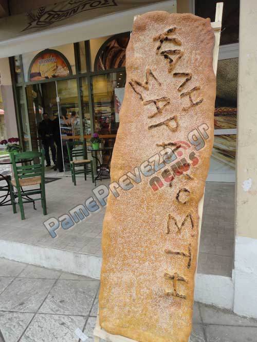 Στο mega market στην Λ. Ιωαννίνων 47 το πρωί γίνονταν το αδιαχώρητο ενώ τα βλέμματα όλων έπεφταν επάνω στην λαγάνα των 30 κιλών και 2,20 μέτρων, που βρίσκονταν στην είσοδο του καταστήματος.