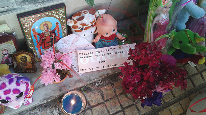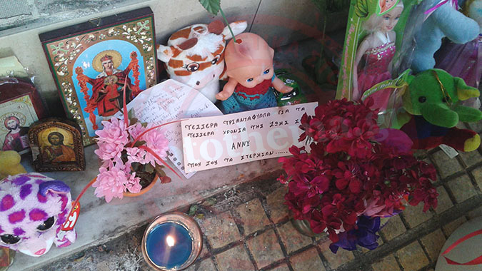 Τριαντάφυλλα, σημειώματα, αρκουδάκια κατακλύζουν το σπίτι της Μιχαήλ Βόδα με ανθρώπους να σπεύδουν στην περιοχή που γράφτηκε ο τραγικός επίλογος για τη μικρή Αννυ, προκειμένου να αποτίσουν, όπως λένε στο protothena. gr, φόρο τιμής και να την αποχαιρετίσουν με δάκρυα στα μάτια.