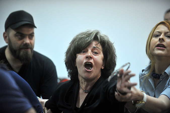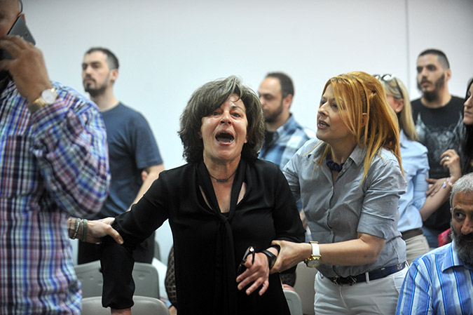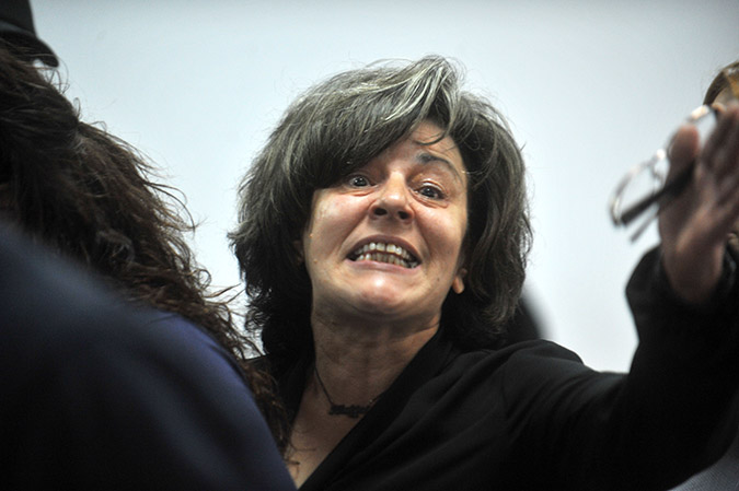 «Αυτό θέλατε φασιστόμουτρα. Δολοφόνοι, με τα όπλα και τον στρατό μαζί σας δεν φοβόσαστε», φώναξε ούρλιαξε η μητέρα του Παύλου Φύσσα στην ανακοίνωση της διακοπής της δίκης των μελών της Χρυσής Αυγής.