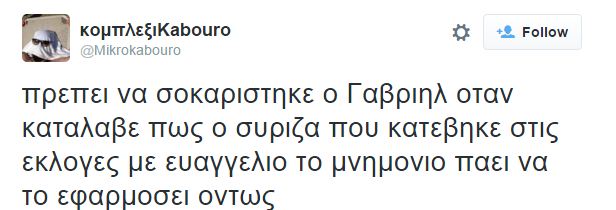 Μπορεί ο Γαβριήλ Σακελλαρίδης να παραιτήθηκε και να μην διεγράφη επισήμως, όμως η ελληνική σφαίρα του Twitter έχει αποδείξει πολλές φορές πως ξέρει να διαβάσει και πίσω από τις γραμμές και τα ψιλά γράμματα. Με ανάλογο τρόπο «υποδέχθηκε» σήμερα και την είδηση της ημέρας, που δεν είναι άλλη από την αποπομπή του βουλευτή, πρώην κυβερνητικού εκπροσώπου και ενός από τους άλλοτε πιο στενούς συνεργάτες του πρωθυπουργού Αλέξη Τσίπρα.