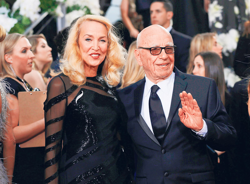 Από τη δική του πλευρά, ο Αυστραλός κροίσος δικαιούται να ισχυρίζεται ότι έχει τον τρόπο του με τα άγρια θηλυκά, ιδιαίτερα μετά τον προηγούμενο γάμο του. Υπενθυμίζεται ότι η τρίτη κατά σειρά κυρία Μέρντοχ ήταν η κινεζικής καταγωγής Αμερικανίδα Γουέντι Ντενγκ, η οποία «αποβλήθηκε» το 2013 μετά το σκάνδαλο που προκάλεσαν φήμες περί εξωσυζυγικών σχέσεών της με τον πρώην πρωθυπουργό της Βρετανίας, Τόνι Μπλερ. Το ότι ο Μπλερ ήταν ανάδοχος της μεγαλύτερης από τις δύο κόρες που έκανε η Ντενγκ με τον Μέρντοχ καταδεικνύει το πόσο μεγάλο ήταν το ενδοοικογενειακό σκάνδαλο που προκάλεσε το «κέρατο» - εάν και εφόσον υπήρξε, κάτι που αρνούνται μετ’ επιτάσεως και οι δύο φερόμενοι ως παράνομοι εραστές. Η Ντενγκ υπήρξε σύζυγος Ρούπερτ Μέρντοχ επί 14 χρόνια, ενώ όταν γνωρίστηκαν εκείνη ήταν 29 και εκείνος μόλις 66 ετών. Ο τραυματισμός της σχέσης τους λίγο έλειψε να προσλάβει μια κυριολεκτική και ανεπανόρθωτη διάσταση, όταν η Γουέντι, εν εξάλλω, φέρεται να επιτέθηκε στον ηλικιωμένο σύζυγό της. Τον έσπρωξε με δύναμη, εκείνος έχασε την ισορροπία του και έπεσε με το κεφάλι πάνω σε ένα πιάνο. Παρά τα παρατράγουδα, όμως, η διαφορά ανάμεσα στις τελευταίες συντρόφους του βαίνει μειούμενη, καθώς τα 37 χρόνια που χώριζαν τον Μέρντοχ από τη Γουέντι Ντενγκ, έγιναν μόλις 25 με την Τζέρι Χολ.