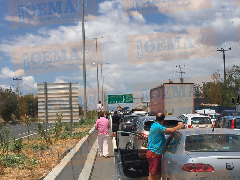 Εκτροπή της κυκλοφορίας των οχημάτων στα δύο ρεύματα της Εθνικής Οδού Αθηνών-Λαμίας για περισσότερο από δύο ώρες, έπειτα από ανατροπή φορτηγού, στο 63χλμ της Ε.Ο., στο ύψος του Σχηματαρίου.