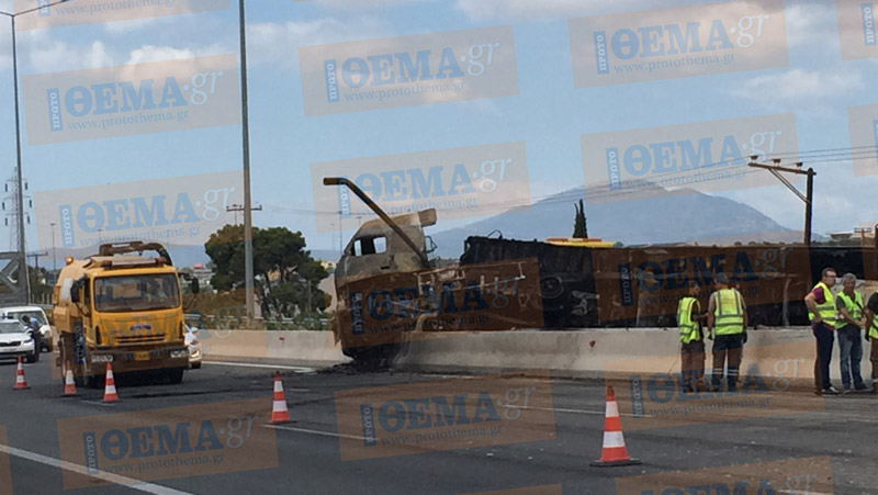 Σύμφωνα με πληροφορίες, λίγο μετά τις 12 το μεσημέρι, στα 500 μετρά στο ύψος των παλιών διοδίων των Αφιδνών στο ρεύμα προς Λαμία, έσκασε το λάστιχο του φορτηγού το οποίο στη συνέχεια καβάλησε το στηθαίο, ανετράπη και τυλίχθηκε στις φλόγες.