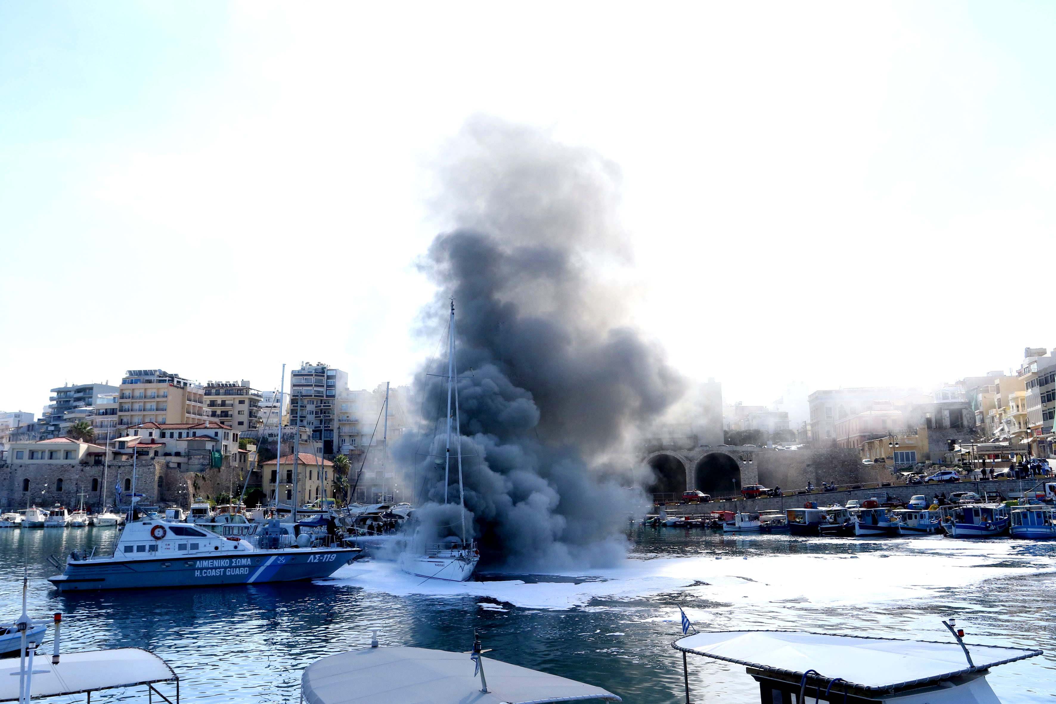 Ερωτηματικά δημιουργεί η φωτιά σε ιστιοφόρο στο λιμάνι του Ηρακλείου