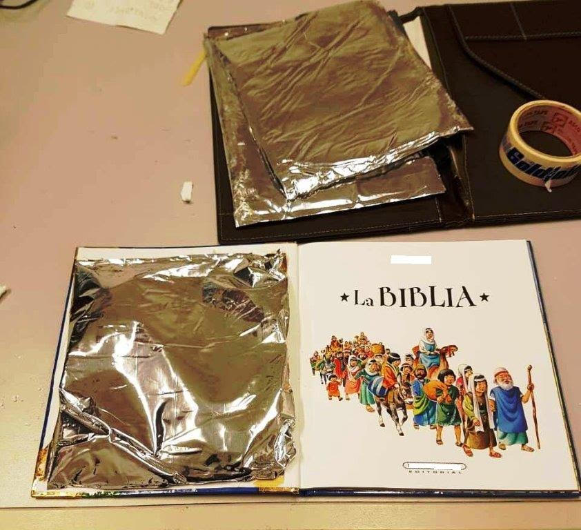 Όπως αποδείχθηκε ο 30χρονος σε ένα βιβλίο που είχε στις αποσκευές του είχε αντικαταστήσει σελίδες με συσκευασίες κοκαΐνης.