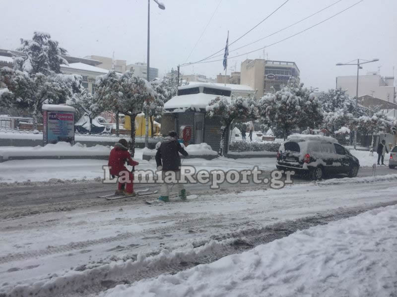 χιονιά είναι αδιάβατο τις τελευταίες ώρες ακόμη και το κέντρο της Λαμίας, όπου από το πρωί έχουν προκληθεί πολλαπλά προβλήματα από ακινητοποιημένα αυτοκίνητα, ενώ τα ασθενοφόρα του ΕΚΑΒ που κινούνται μόνο με αλυσίδες δεν προλαβαίνουν να μεταφέρουν τραυματίες κυρίως με κατάγματα μετά από πτώσεις στο χιόνι. Είναι χαρακτηριστική η ανάρτηση του Λαμιώτη δημοσιογράφου Γιώργου Παλαμιώτη, στο facebook, ο οποίος αναφέρει ότι έως τις 12 το μεσημέρι περισσότερα από είκοσι περιστατικά είχαν διακομισθεί στο νοσοκομείο της πόλης, ενώ όπως γράφει, τα ασθενοφόρα, κάποια στιγμή, μετέφεραν τα περιστατικά δύο - δύο.