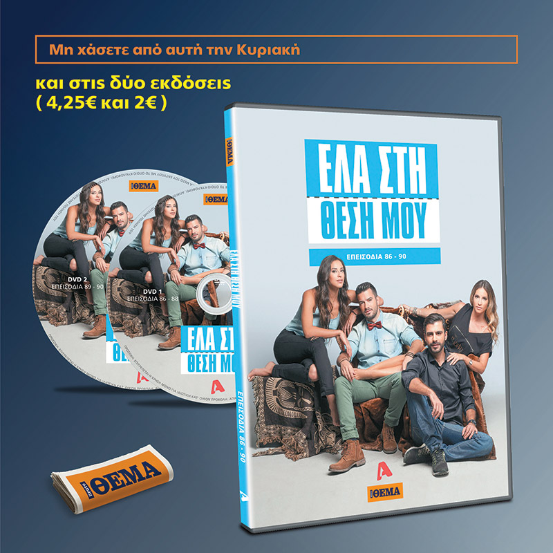 Από αυτή την Κυριακή και κάθε Κυριακή, το ΘΕΜΑ σας προσφέρει δύο DVD με τα πέντε επεισόδια της επόμενης εβδομάδας της νέας καθημερινής σειράς του ALPHA, πριν ακόμη προβληθούν, για να τα βλέπετε πριν από όλους, όταν και όποτε θέλετε!