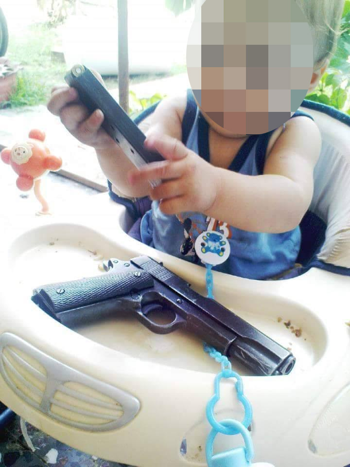 Μεγάλη εντύπωση ωστόσο προκαλεί μία φωτογραφία που είχε αναρτήσει ο 30χρονος και απεικονίζεται το ένα από τα δύο παιδιά του το οποίο παίζει με ένα αληθινό πιστόλι και κρατά στα αθώα χεράκια του τον γεμιστήρα γεμάτο! Μάλιστα πρόκειται για το πιστόλι Tokarev. Πολλά ερωτηματικά εγείρονται για το αν ο 30χρονος Αλβανός κατείχε νόμιμα το συγκεκριμένο πιστόλι και αν είχε άδεια για αυτό.