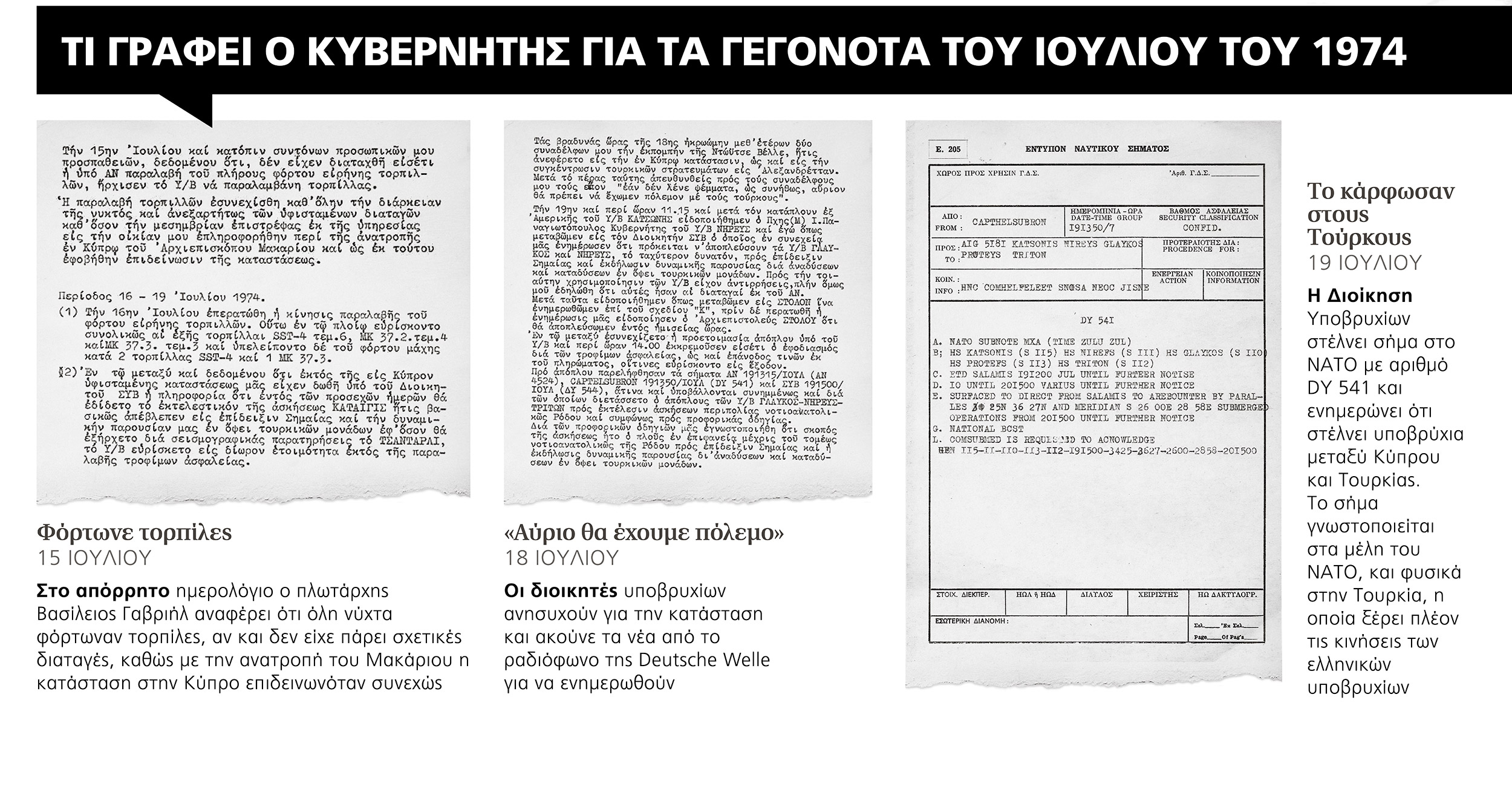 Η άκρως απόρρητη έκθεση που συνέταξε ο πλωτάρχης Βασίλειος Γαβριήλ, κυβερνήτης του υποβρυχίου «Γλαύκος» το 1974, με βάση τα πολεμικά ημερολόγια, καταδεικνύει ότι η Ελλάδα ίσως μπορούσε να διασώσει και το κύρος της και την Κύπρο. Ωστόσο αυτό που έλειπε ήταν η βούληση της χούντας του Ιωαννίδη, η οποία παρέπαιε, για να σωριαστεί λίγο αργότερα σαν χάρτινος πύργος, παραδίδοντας ένα κομμάτι του Ελληνισμού στην Τουρκία.
