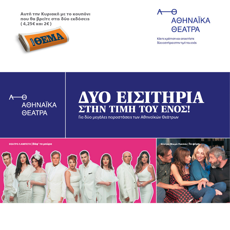 3. Δύο εισιτήρια στην τιμή του ενός για δύο μεγάλες παραστάσεις των Αθηναικών Θεάτρων!