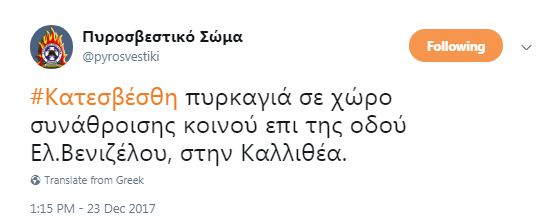 Φωτιά σε εστιατόριο στην Καλλιθέα