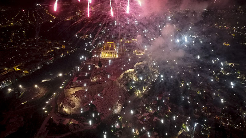 Στην Αθήνα, οι εκδηλώσεις για την έλευση του 2018 έγιναν στο Θησείο. Στην αλλαγή της χρονιάς, η Ακρόπολη «φώτισε» από βεγγαλικά που ήταν εμφανή σε πολλές περιοχές του λεκανοπεδίου.