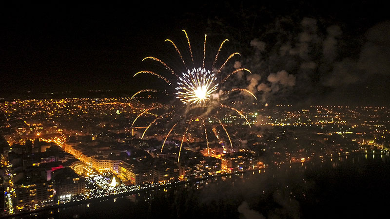 Στη Θεσσαλονίκη, οι εκδηλώσεις για τον εορτασμό της νέας χρονιάς έγιναν στην πλατεία Αριστοτέλους. Στην αλλαγή του χρόνου, εντυπωσιακά πυροτεχνήματα σκέπασαν τον Θερμαϊκό.