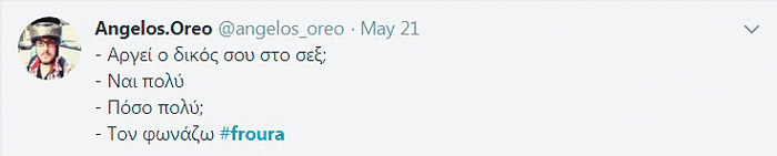 Εξ οικείων ήταν τα βέλη που χτύπησαν στην αρχή του καλοκαιριού τον λογαριασμό του ηγέτη των ΑΝ.ΕΛ. και υπουργού Αμυνας στο Twitter, όπως ο ίδιος κατήγγειλε. Μια γραβάτα για πάρτυ, γεμάτη με χαρωπά πέη-καρικατούρες εικονιζόταν σε μήνυμα, το οποίο έσπευσε να αποσύρει ο Πάνος Καμμένος - αν και η ζημιά είχε ήδη γίνει. Την αποκαθήλωση της γραβάτας, η οποία στην αρχαιότητα θα ταυτιζόταν με το συνειδητά άσεμνο πνεύμα της βακχείας και δεν θα ήταν καθόλου παρεξηγήσιμη, ο υπουργός συνόδευσε με το εξής βιαστικό κείμενο: «Πάλι χτύπημα από το παιδί στο λογαριασμό μου, το κατεβάζω...».