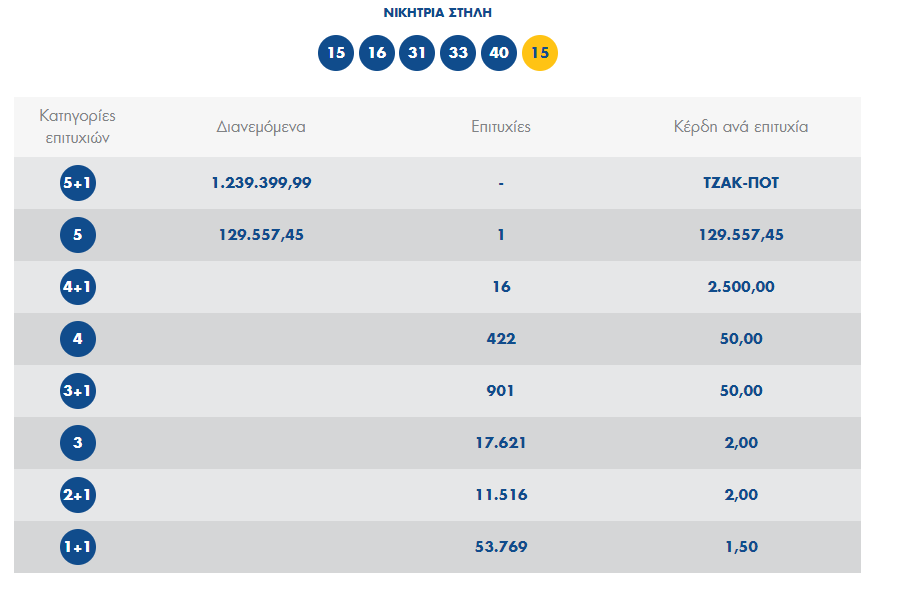 Στη δεύτερη κατηγορία, υπήρξε ένας τυχερός που κερδίζει το ποσό των 129.557,45.