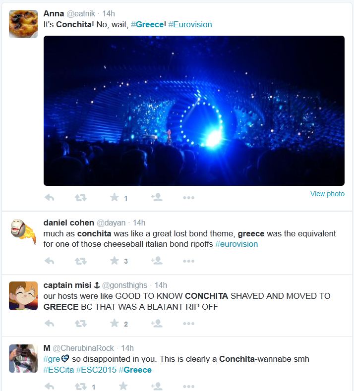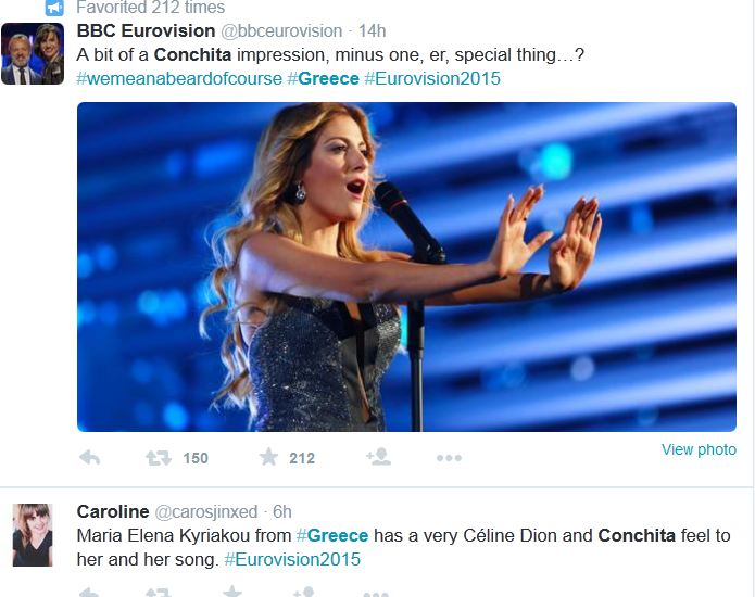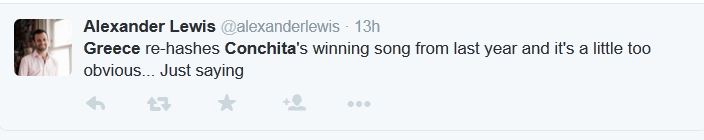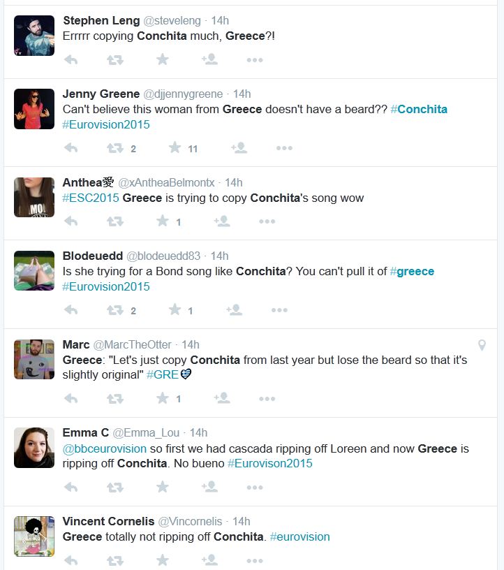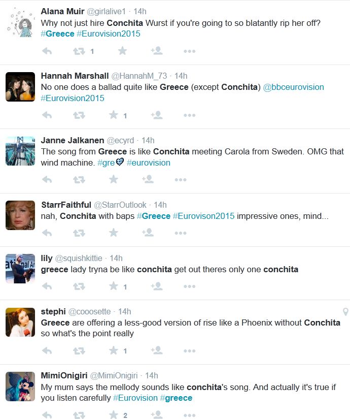 Πολλοί όμως σχολίασαν πως το τραγούδι μας είναι μια αντιγραφή της... Conchita! «Είναι αυτό το περσινό νικητήριο τραγούδι με διαφορετικούς στίχους;», «έχει λίγο από Conchita το τραγούδι;», «είναι ολοφάνερο πώς μοιάζουν τα τραγούδια», είναι κάποια από τα σχόλια που κατέκλυσαν το twitter!