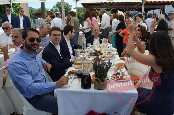 Οι 70 περίπου καλεσμένοι έφθασαν με πουλμανάκια από την Εκκλησία στο προαύλιο του σχολείου, ενώ η κυρία Αγγελοπούλου μιλούσε συνεχώς με κατοίκους του χωριού.