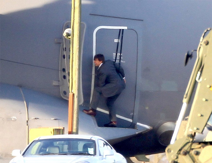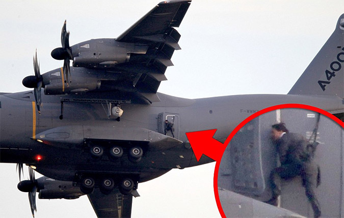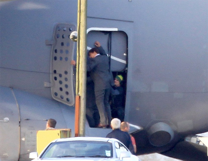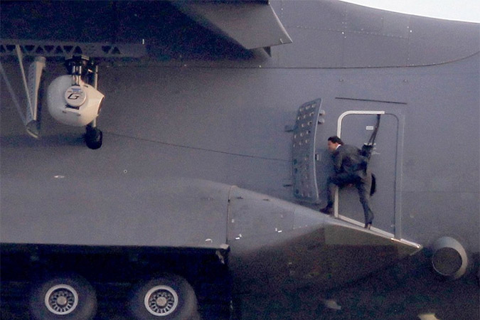 Ο 52χρονος λοιπόν, στην πέμπτη κατά σειρά ταινία, Mission Impossible, απαθανατίστηκε την ώρα που γύριζε μια σκηνή, όπου βρισκόταν κρεμασμένος στην πόρτα ενός θηριώδους στρατιωτικού μεταγωγικού Airbus A400M. Οι φωτογραφίες δείχνουν τον Κρουζ δεμένο, σχεδόν «κολλημένο» στην πόρτα του αεροσκάφους. Σε ένα από τα καρέ που έχουν δημοσιευθεί, ο βραβευμένος ηθοποιός κρατιέται μόνο με το ένα χέρι σχεδόν αφήνοντας το