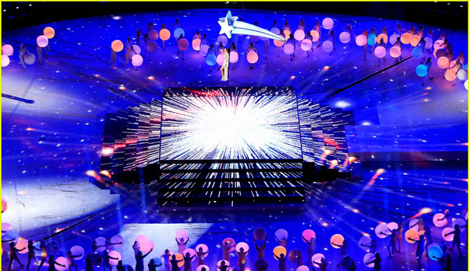 Η επόμενη εμφάνιση της ήρθε από... ψηλά καθώς αιωρούνταν σε ένα ειδικά διαμορφωμένο αστέρι φορώντας ένα ασημένιο φόρεμα κεντημένο με αστέρια.