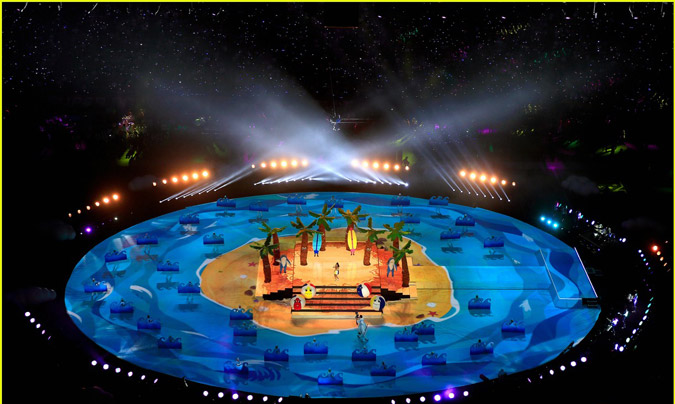 Η τραγουδίστρια εμφανίστηκε στη σκηνή με ένα σύνολο με κεντημένες τρισδιάστατες φωτιές ενώ σύμφωνα με πληροφορίες του ξένου Τύπου τα μποτάκια που φόρεσε ήταν διακοσμημένα με 12.600 κρύσταλλα Swarofski.
