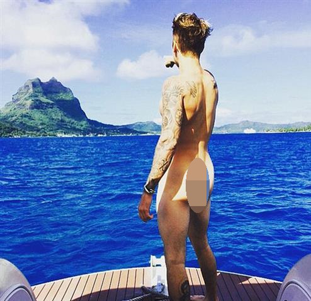 Ο Μπίμπερ, απολαμβάνει τις διακοπές του στα νησιά Bora-Bora, τα οποία δέιχνει με το δάχτυλο του. Μάλιστα τη γυμνή φωτογραφία του, την αναδημοσίευσε και η pop star Miley Cyrus γιατί της άρεσε πολύ!