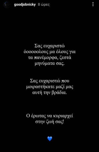 Ο νεαρός καλλιτέχνης τραγούδησε τρία τραγούδια του και σε πρόσφατα stories του στο Instagram, θέλησε να εκφράσει δημόσια την αγάπη του προς τον πατέρα του, ενώ ευχαρίστησε και το τηλεοπτικό κοινό.