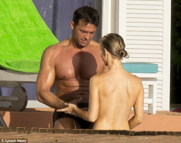 Το μοντέλο από την Πολωνία εντοπίστηκε από το φωτογραφικό φακό topless δίπλα στην πισίνα του πολυτελούς ξενοδοχείου, όπου διαμένει με τον επιχειρηματία. Φυσικά, έτσι προέβαλλε και το καλλίγραμμο κορμί της που «έντυσε» μόνο με το λευκό κάτω μέρος του μπικίνι της.