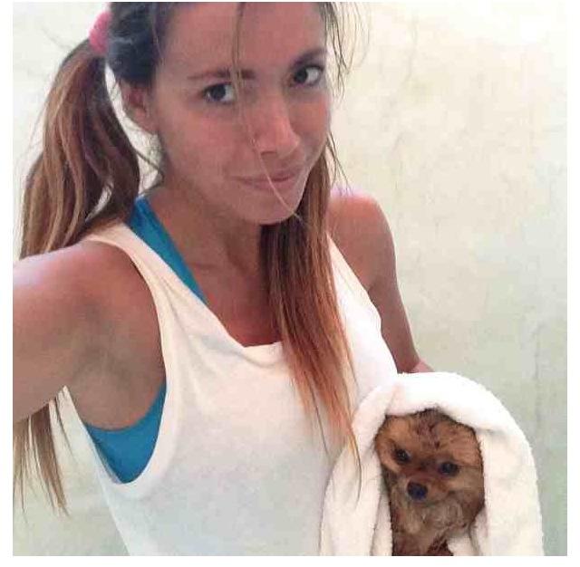 Χωρίς ίχνος μακιγιάζ και με το αγαπημένο της σκυλάκι αγκαλιά πόζαρε στο φωτογραφικό φακό του κινητού της η Όλγα Φαρμάκη.