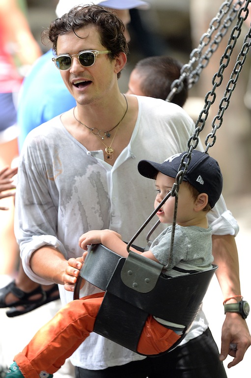 O Orlando Bloom φαίνεται πολύ ευτυχισμένος που περνάει χρόνο με τον γιο του Flynn στην παιδική χαρά του Central Park.