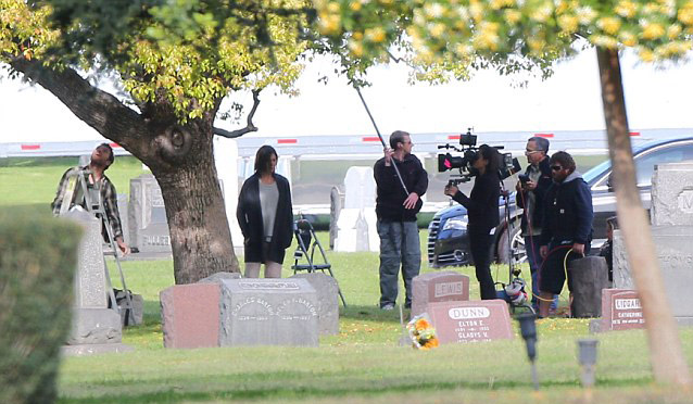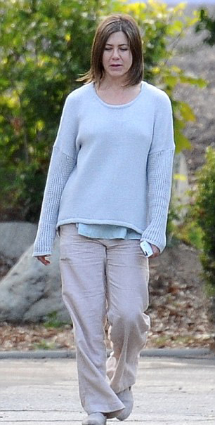 Αποκαλύπτοντας την πρόσφατα βαμμένη κόμη της, η συνήθως χαμογελαστή ηθοποιός εμφανίστηκε στα γυρίσματα της τελευταίας της ταινίας Cake, φανερά ενοχλημένη, με τα χέρια σταυρωμένα, να τριγυρίζει σαν την... άδικη κατάρα.
