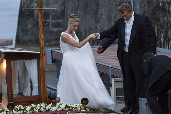 Ο γάμος του γοητευτικού πρίγκιπα με την ζάπλουτη Ιταλίδα πραγματοποιήθηκε στο ιδιωτικό νησάκι “San Giovanni” το οποίο ανήκει στην οικογένεια της νύφης από τον 17ο αιώνα, ενώ μία εβδομάδα νωρίτερα είχε προηγηθεί πολιτικός γάμος στο ροζ ανάκτορο του πριγκιπάτου σε κλειστό οικογενειακό κύκλο. Η νύφη επέλεξε για την γαμήλια τελετή ένα κατάλευκo δαντελένιο νυφικό δια χειρός Giorgio Armani, ενώ ο γαμπρός γκρι φράκο με την συνέχεια της βραδιάς να “ντύνει” την Μπεατρίς με λευκή μάξι τουαλέτα _ επίσης δια χειρός Armani _ και τον Πιερ με μαύρο κοστούμι.