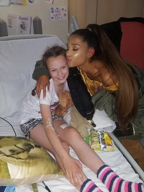 Σύμφωνα με την εφημερίδα Manchester Evening News, η Γκράντε πήγε δώρα και συνομίλησε με τους νεαρούς φαν της, μεταξύ αυτών και η 10χρονη Τζέιντεν Φαρέλ- Μαν,η οποία έχει κατάγματα και στα δύο πόδια και φέρει τραύματα από θραύσματα, ενώ μέχρι στιγμής έχει υποβληθεί σε δύο εγχειρήσεις.