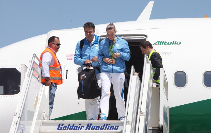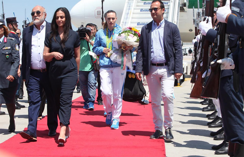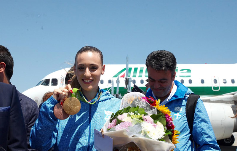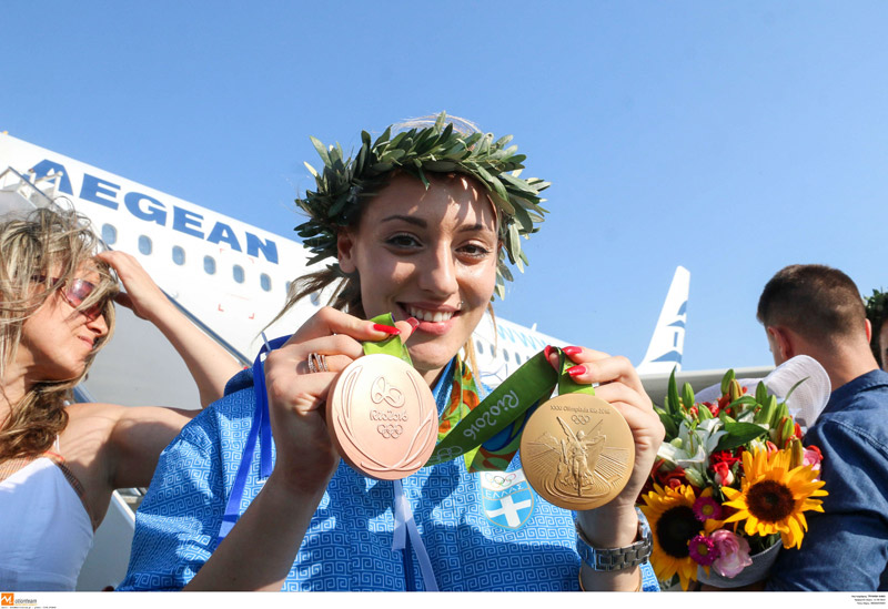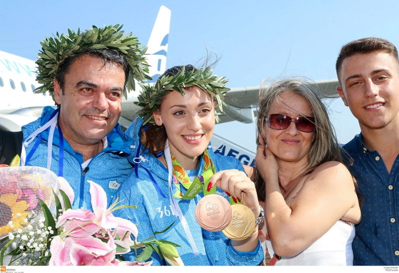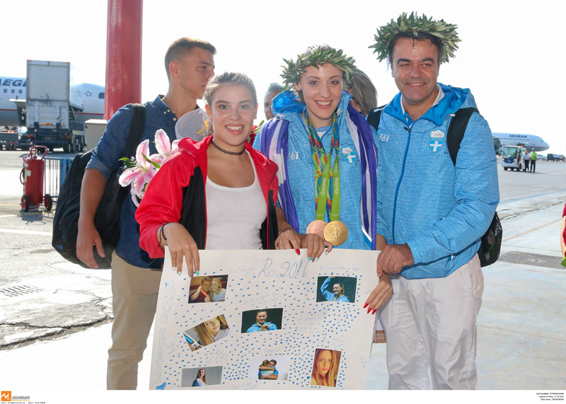 Η 20χρονη αθλήτρια ξεκίνησε χθες το ταξίδι της από το μακρινό Ρίο Ντε Τζανέιρο μαζί με τον πατέρα και προπονητή της, Τάσο Κορακάκη, και σήμερα στις 13.25 έφτασε στην Αθήνα από όπου και συνέχισε για τη Θεσσαλονίκη με σκοπό να φτάσει στην ιδιαίτερη πατρίδα της, τη Δράμα.