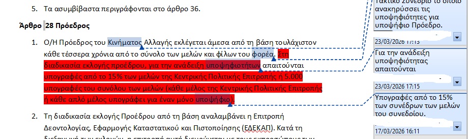 Σημειώνεται ότι οι εν λόγω προτάσεις παρουσιάστηκαν και χθες στη συνεδρίαση της γραμματείας της επιτροπής καταστατικού, ωστόσο γίνονται ακόμη διαβουλεύσεις και ζυμώσεις, ως εκ τούτου μπορεί να καταργηθούν ή να τροποποιηθούν κάποιες εξ αυτών ή να έρθουν νέες. Για παράδειγμα όπως