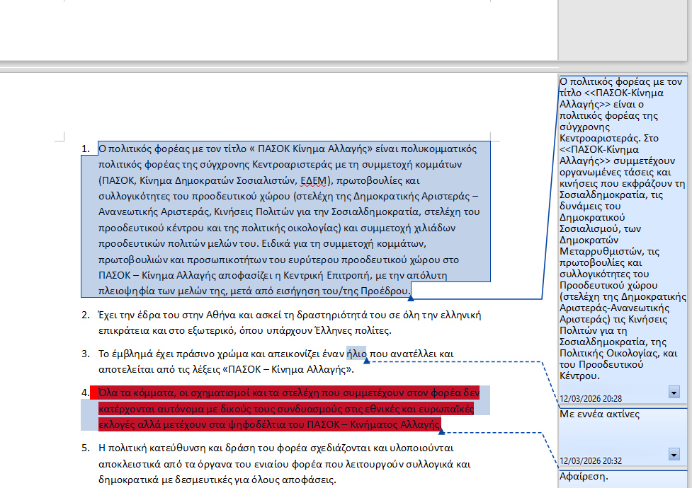 Προϋφιστάμενες οικονομικές υποχρεώσεις των κομμάτων που συναποτελούσαν το φορέα με την προηγούμενη μορφή του(ΠΑ.ΣΟ.Κ.,ΚΙ.ΔΗ.ΣΟ,Ε.Δ.Ε.Μ) αναλαμβάνονται από το ΠΑΣΟΚ-Κίνημα Αλλαγής».