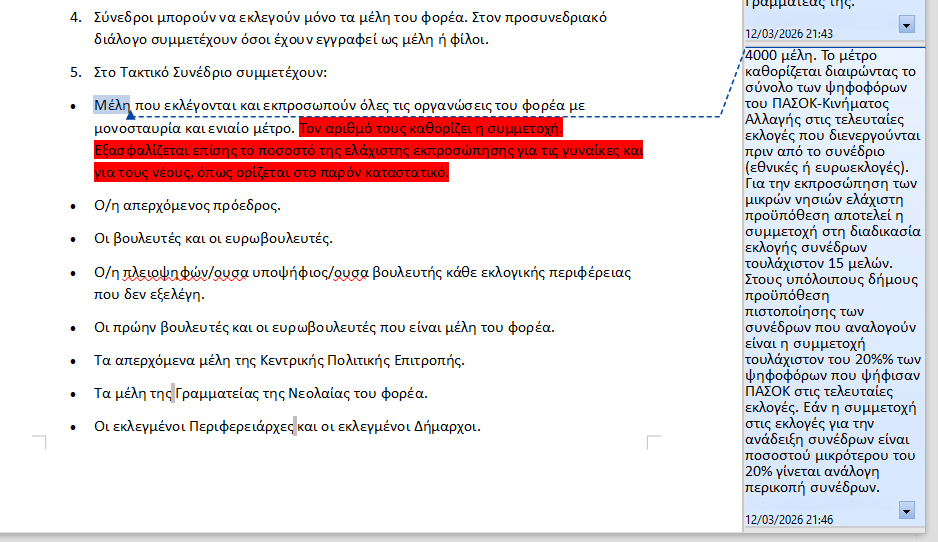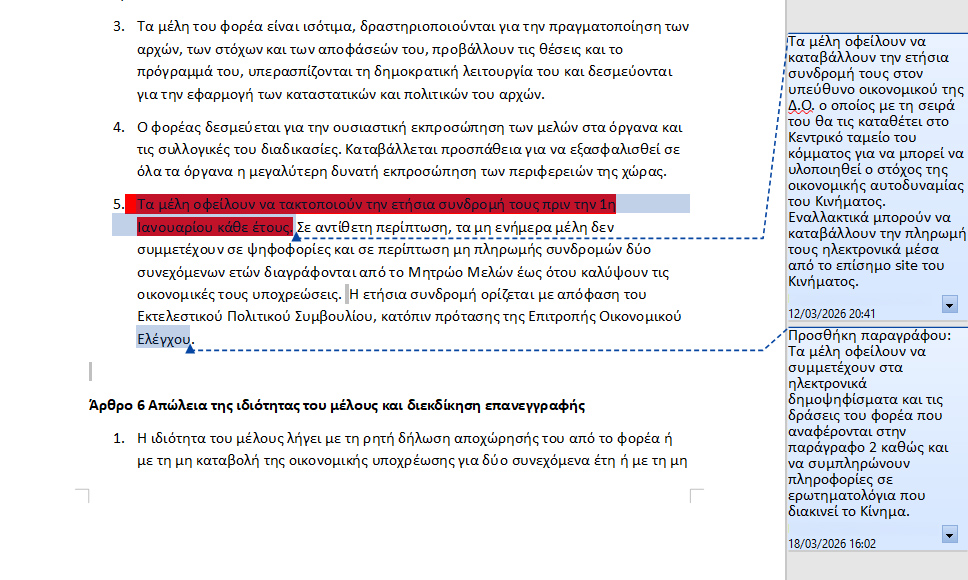 Αλλάζει το ανώτατο όριο θητειών: Από 3 συνεχόμενες (12 έτη) για βουλευτές και δύο για ευρωβουλευτές, η νέα ρύθμιση προβλέπει: «Θεσμοθετείται για τους Βουλευτές ανώτατο όριο πέντε συνολικά πλήρων θητειών ή 20 ετών. Σε περίπτωση που δεν έχουν συμπληρωθεί τα 20 χρόνια δύνανται να έχει μία επιπλέον θητεία. Αντίστοιχα θεσμοθετείται για τους Ευρωβουλευτές ανώτατο όριο συνολικά τριών πλήρων θητειών ή 15 χρόνια. Από τον παραπάνω περιορισμό εξαιρούνται όσοι έχουν διατελέσει Πρόεδροι του Κινήματος».