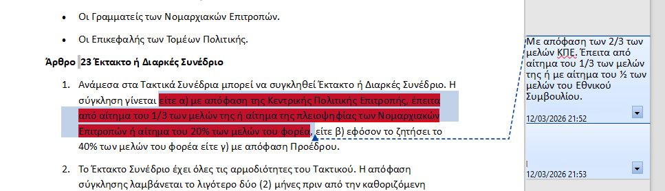 Αφαιρείται η παράγραφος: «Η προκήρυξη του Τακτικού Συνεδρίου, η οργάνωση της προσυνεδριακής διαδικασίας, τα προσυνεδριακά κείμενα και το μέτρο αντιπροσώπευσης αποφασίζονται από την Κεντρική Πολιτική Επιτροπή, μετά από εισήγηση Εκτελεστικού Πολιτικού Συμβουλίου και Προέδρου» και αντικαθίσταται ως εξής: «