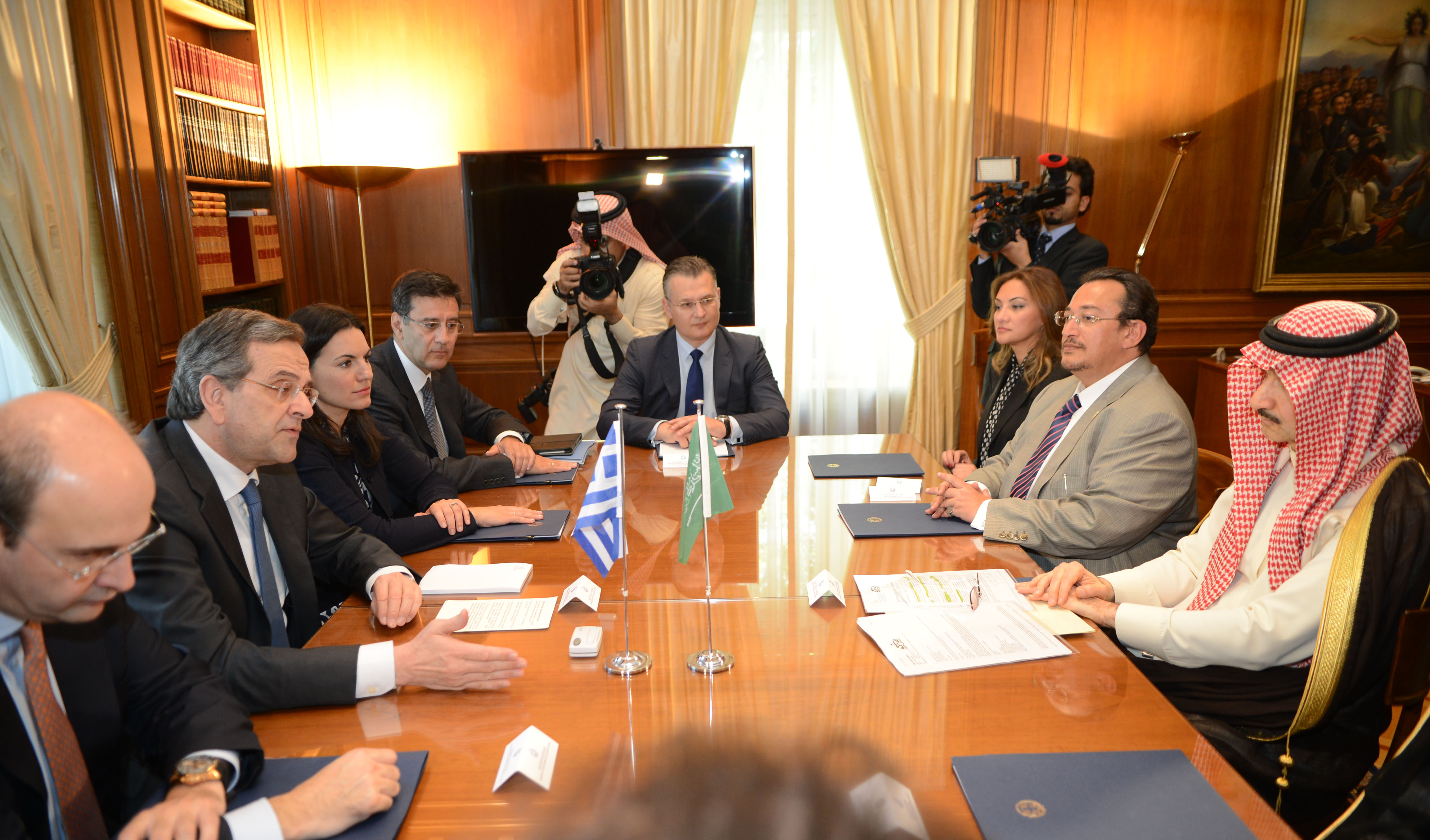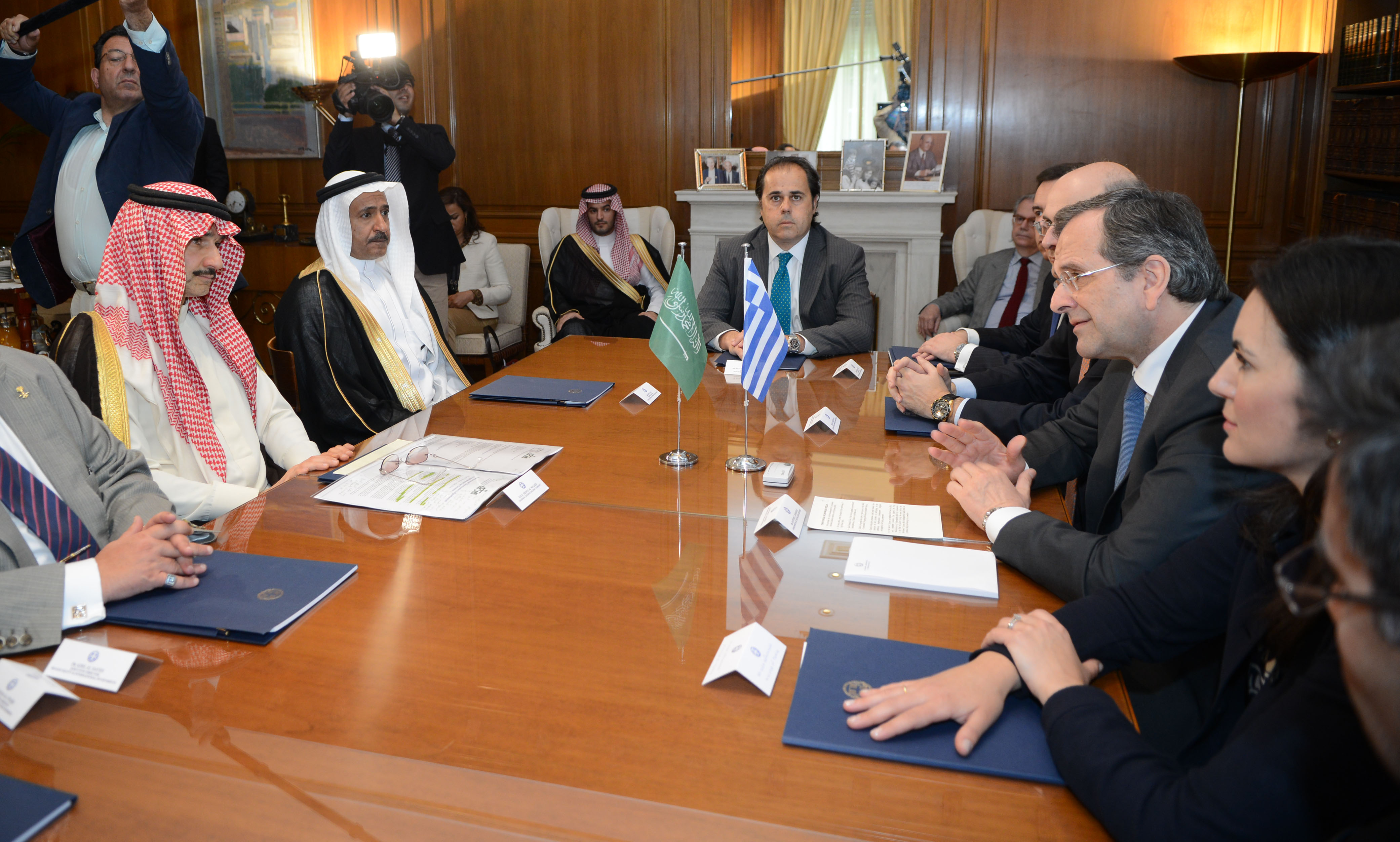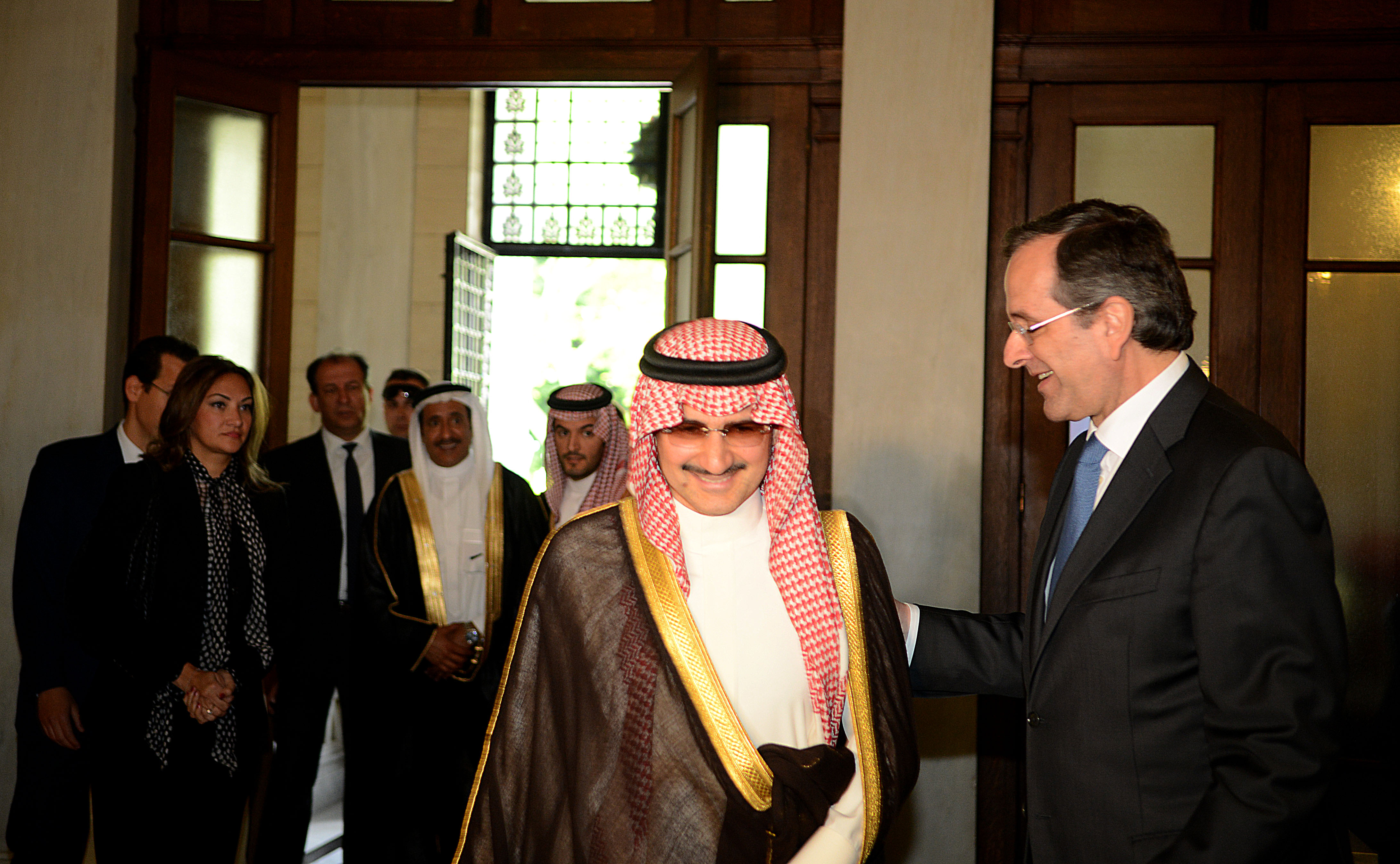 Ο πρωθυπουργός Αντώνης Σαμαράς συναντήθηκε στο Μέγαρο Μαξίμου με τον πρίγκιπα της βασιλικής οικογένειας της Σαουδικής Αραβίας και πρόεδρο της Kingdom Holding Company Αλαουαλίντ Μπιν Ταλάλ Μπιν Αμντουλαζίζ Αλ Σαούντ.
