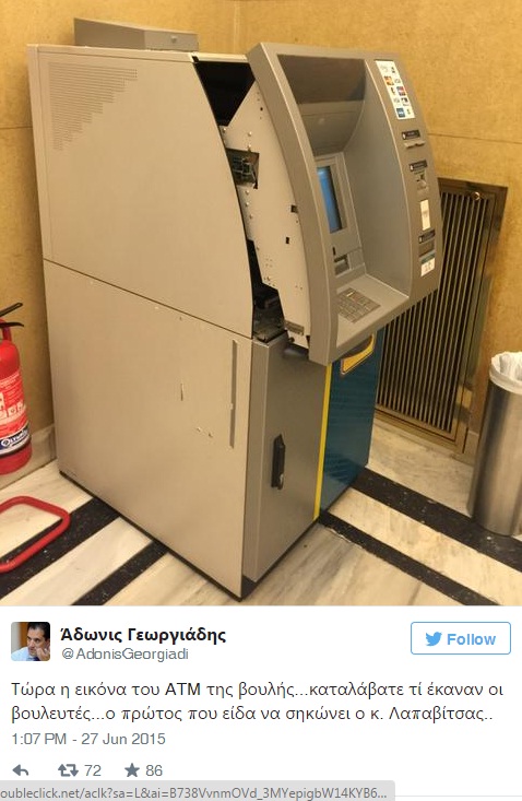 Ήταν «ο πρώτος που είδα να σηκώνει χρήματα» από το ΑΤΜ της Βουλής, έγραψε στο twitter.