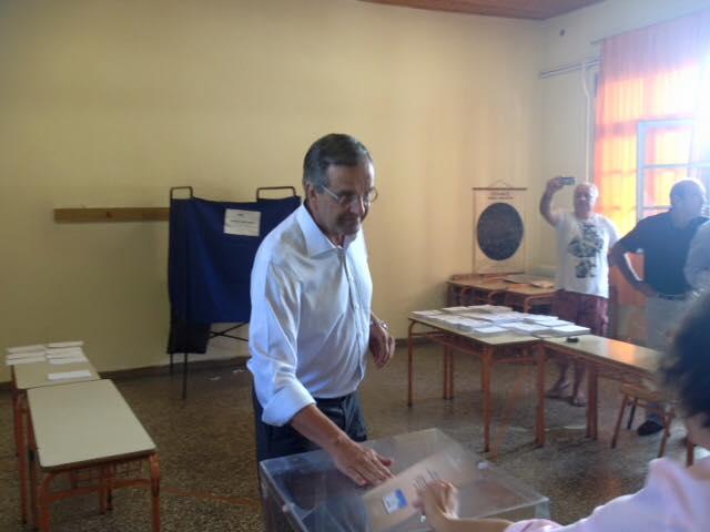 Συνοδευόμενος από στενούς του συνεργάτες, τον πρόεδρο της ΝΟΔΕ και υποψήφιο βουλευτής της Νέας Δημοκρατίας Περικλή Μαντά, φίλους, αλλά και από την οικογένεια του ο Αντώνης Σαμαράς ψήφισε λίγα λεπτά μετά τις 10 στο Δημοτικό Σχολείου της Πύλου. Μαζί του άσκησε για πρώτη φορά και το εκλογικό του δικαίωμα ο 18χρονος γιός του Κωνσταντίνος.