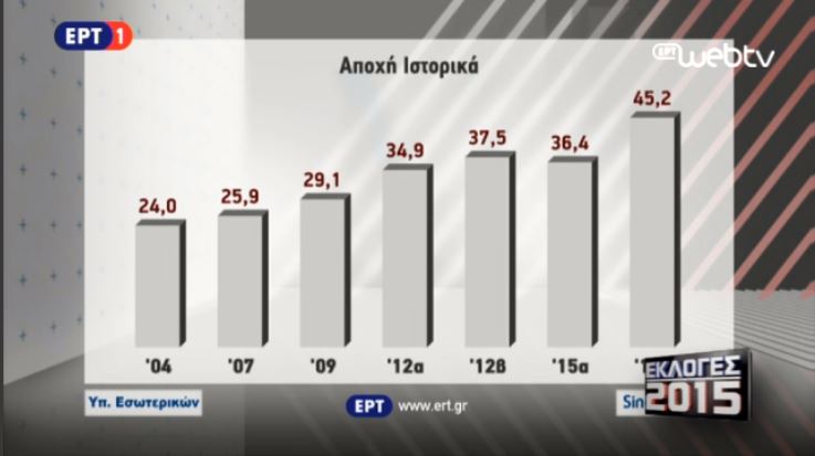 Ιστορικά, το δεύτερο μεγαλύτερο ποσοστό αποχής είχε σημειωθεί στις επαναληπτικές εκλογές το καλοκαίρι του 2012, με 37,5%.