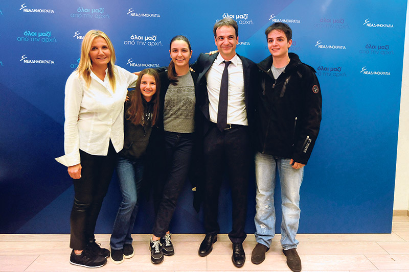 Με τη σύζυγό του Μαρέβα και τα παιδιά τους στα επινίκια της εκλογής του στην προεδρία της Ν.Δ.