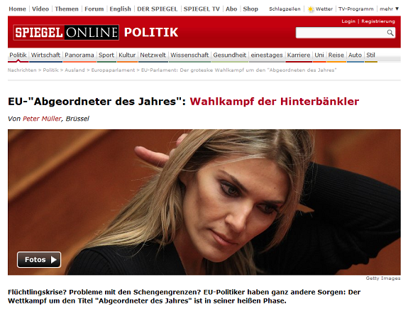 Το γερμανικό περιοδικό «Der Spiegel» δημοσιεύει ένα σχετικό άρθρο για τους υποψηφίους καλύτερους ευρωβουλευτές της χρονιάς, με την φωτογραφία της Εύας Καϊλή.
