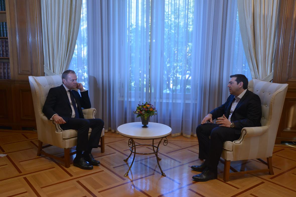 Η Ελλάδα έχει πληγεί περισσότερο από κάθε άλλη χώρα εξαιτίας της προσφυγικής κρίσης, παραδέχθηκε στις δηλώσεις του μετά τη συνάντηση με τον πρωθυπουργό ο Ντόναλντ Τουσκ. Το να βγει όμως από τη Σένγκεν δεν θα λύσει το πρόβλημα, Η Ελλάδα είναι μέλος της ΕΕ και θα παραμείνει, τόνισε και συνέστησε οι χώρες - μέλη να αποφεύγουν τις μεταξύ τους διαφωνίες που δεν λύνουν τα προβλήματα: «Μονομερείς ενέργειες, αν και ίσως να μπορούν να γίνουν κατανοητές σε εσωτερικό επίπεδο, κάνουν πολύ κακό στην ευρωπαϊκή αλληλεγγύη», είπε.