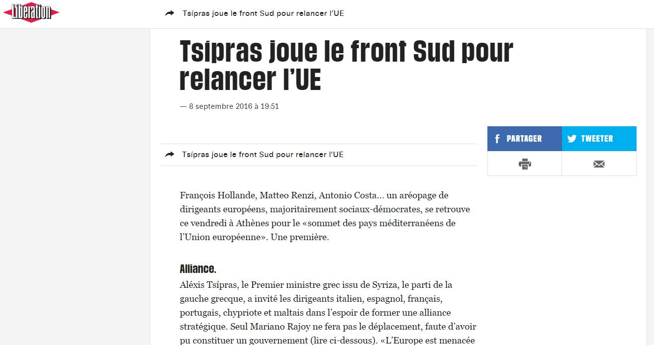 «Είναι επίσης απαραίτητο οι αριστερές ιδέες που προωθεί η ελληνική κυβέρνηση να βρουν μια ευρύτερη απήχηση στην ΕΕ», όπως σχολιάζει η Liberation.