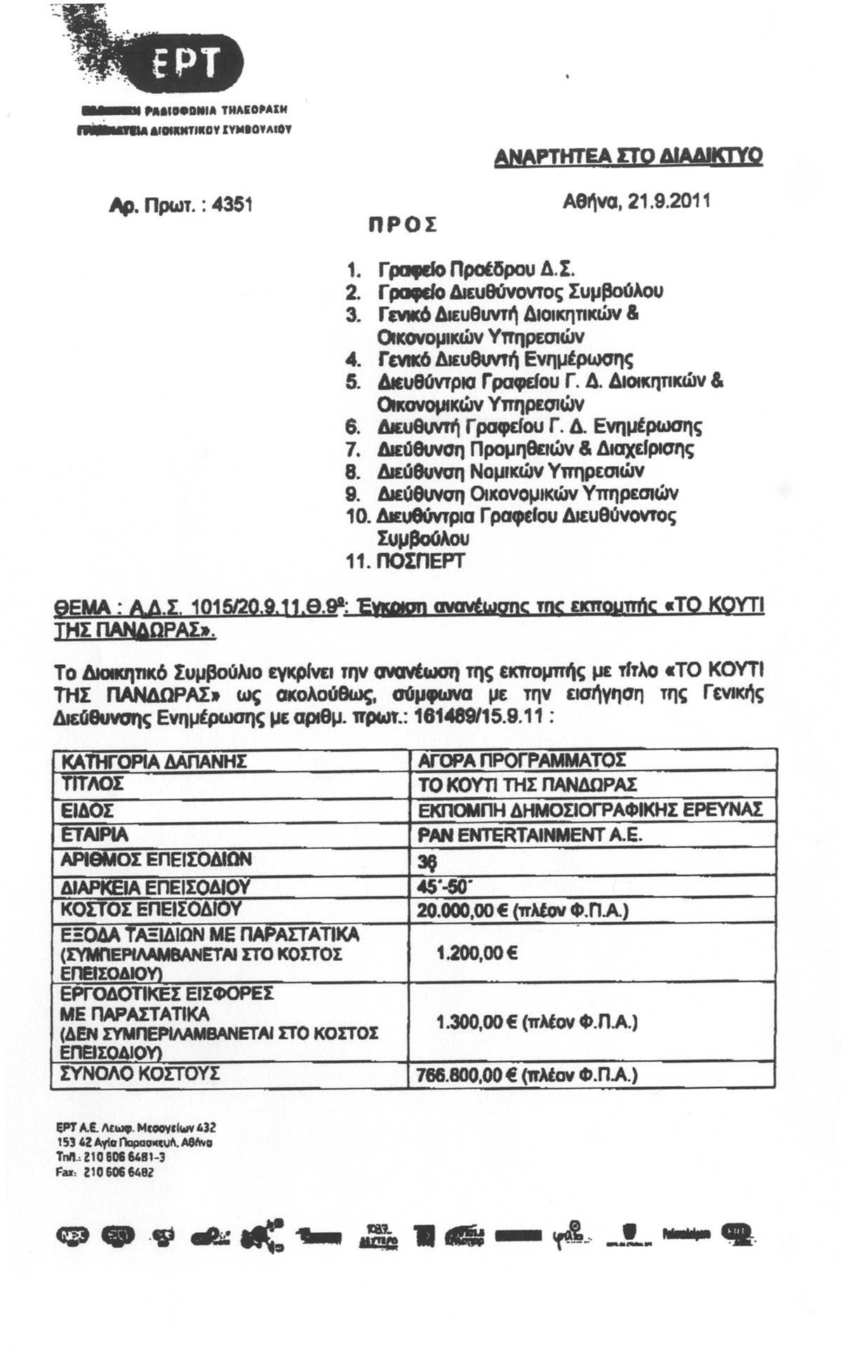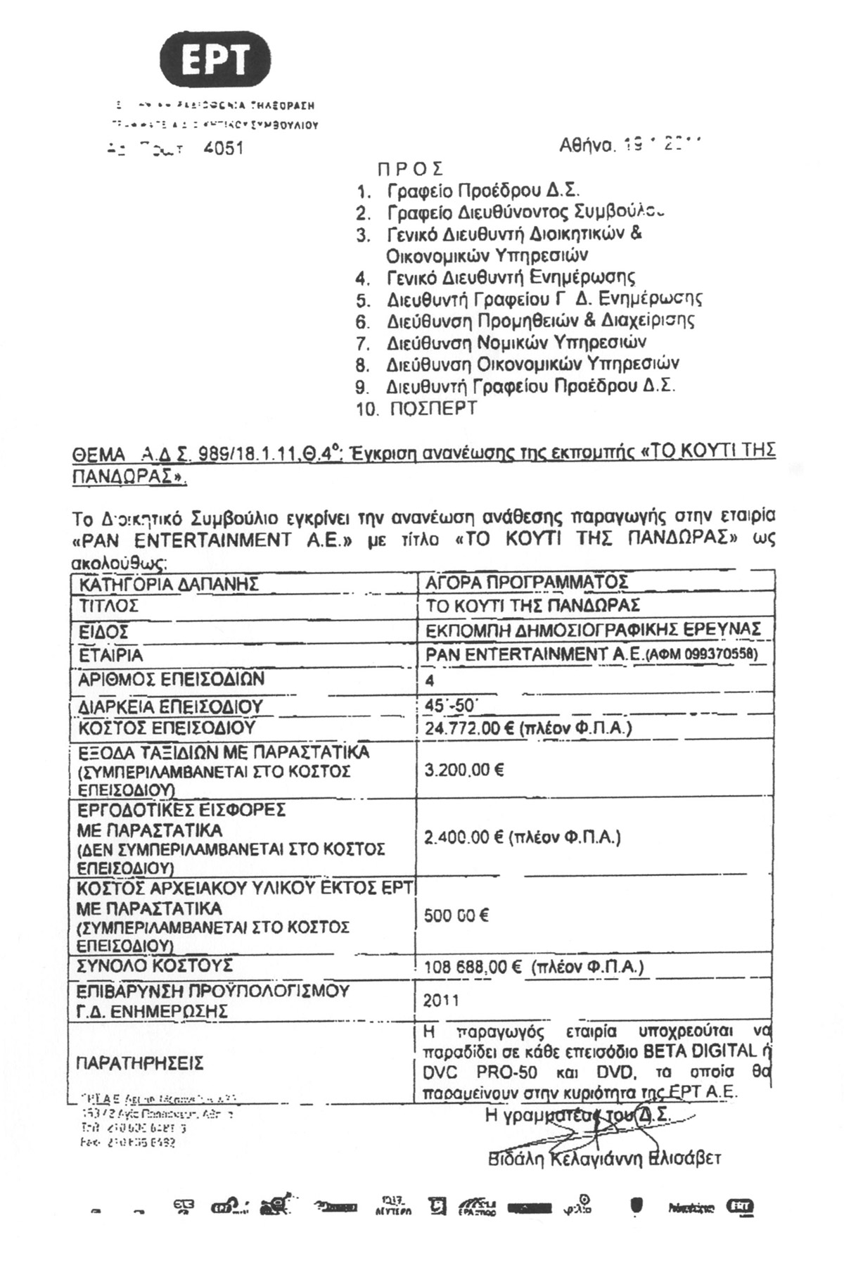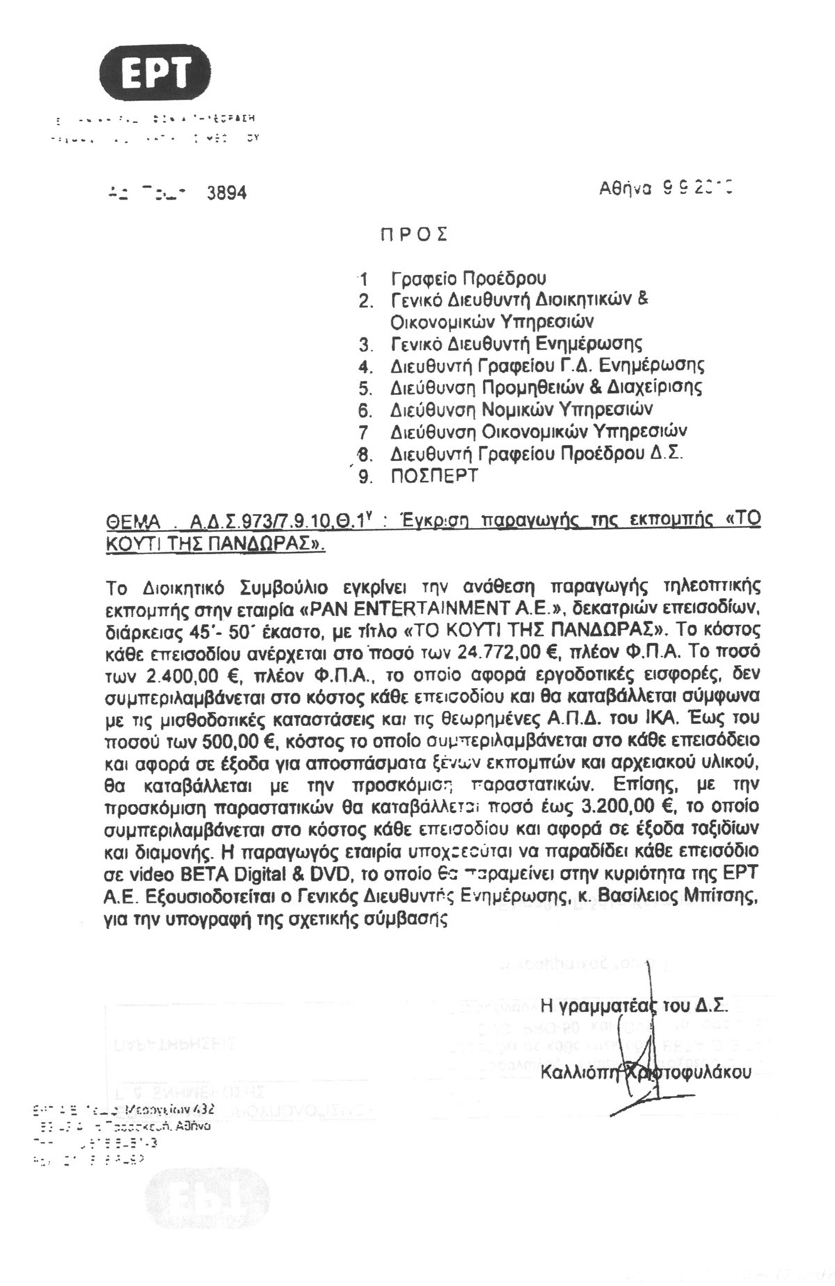 Υπερπαραγωγή Βαξεβάνη με κρατικό χρήμα για το «κουτί της Πανδώρας». Σύνολο 223.622 ευρώ (14 εκπομπές προς 15.973 ευρώ το κάθε επεισόδιο) εις υγεία των κορόιδων