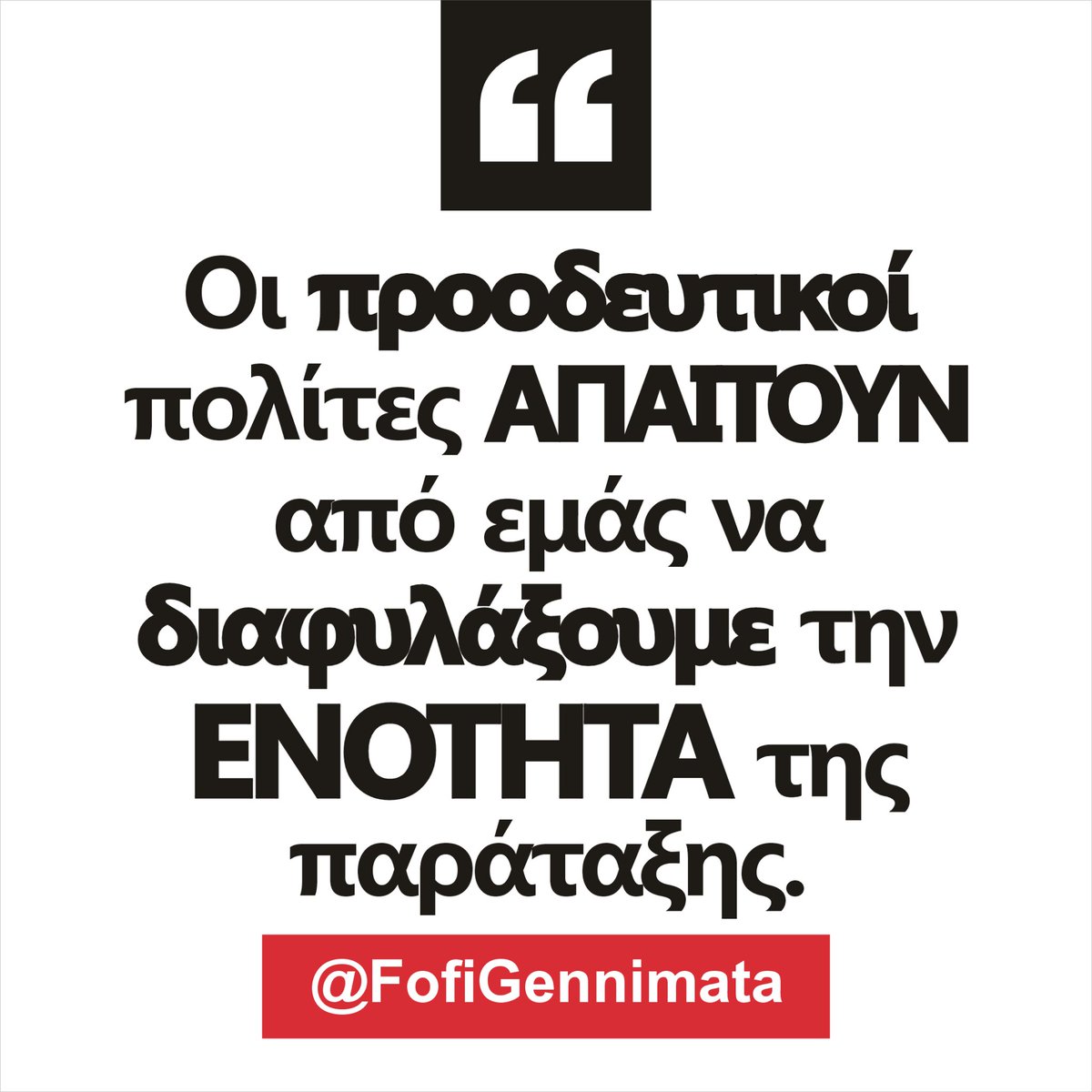 Και φυσικά δεν συνιστά μικρότητα ούτε σε προσωπικό όφελος αποσκοπεί, η επιμονή στον διάλογο, στην κριτική και στην απαίτηση να κάνουμε πράξη τις κοινές μας αξίες».